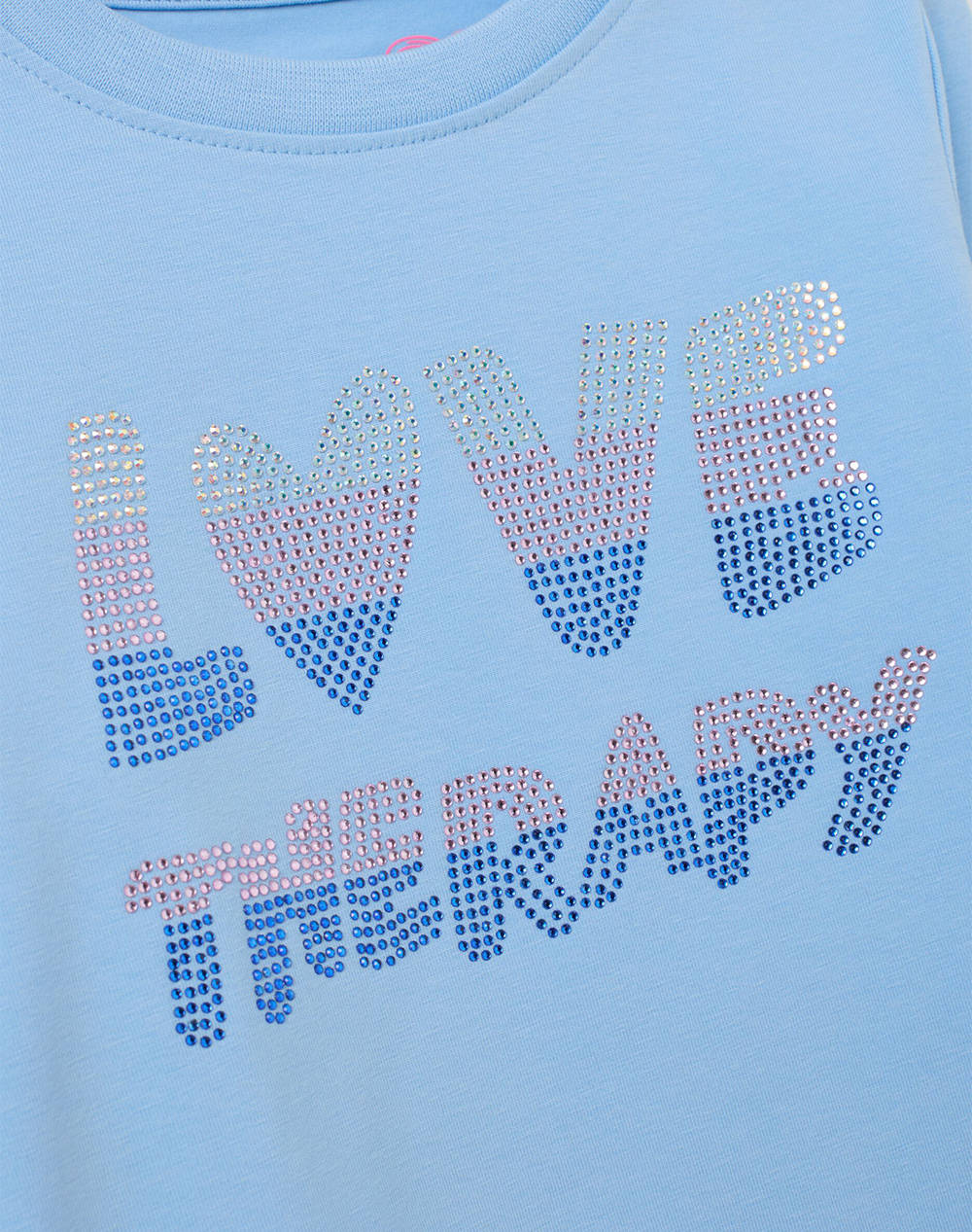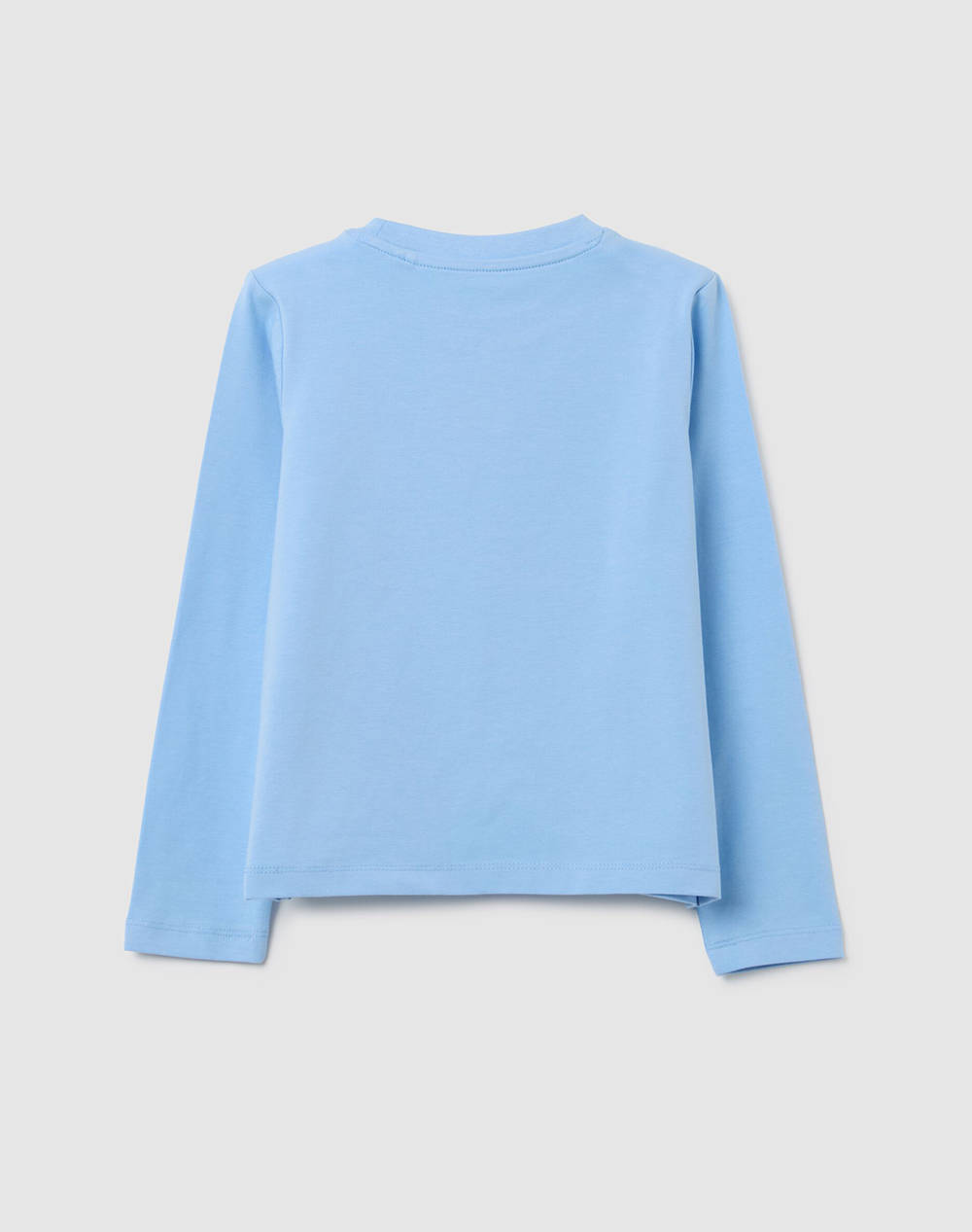 Kids' shirt, regular fit, solid color, long sleeves, with rhinestones on the front and round neckline. (Composition: 95% Cotton, 5% Elastane)