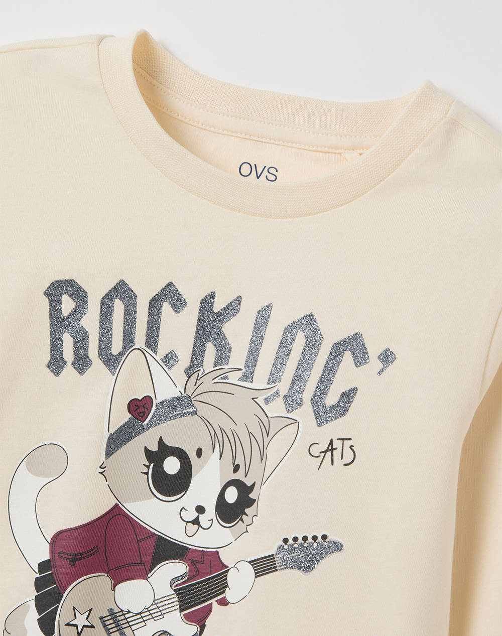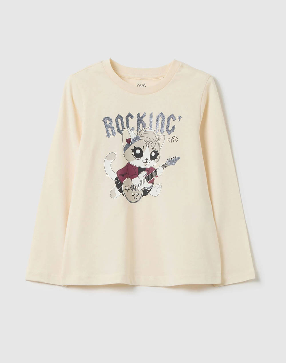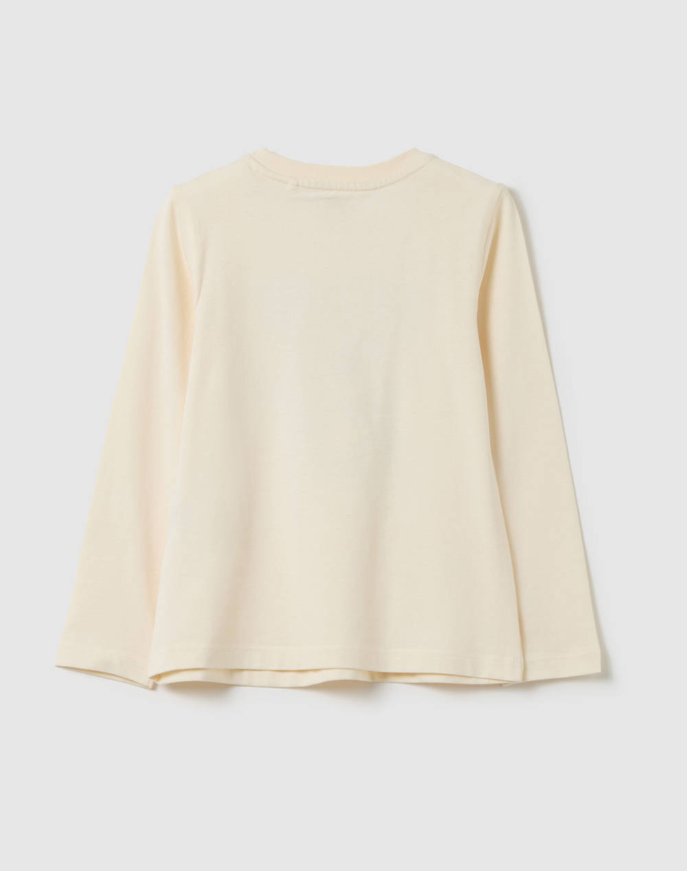 Kids' shirt, solid color, long sleeves, regular fit, with print on the front and round neckline. (Composition: 100% Cotton)