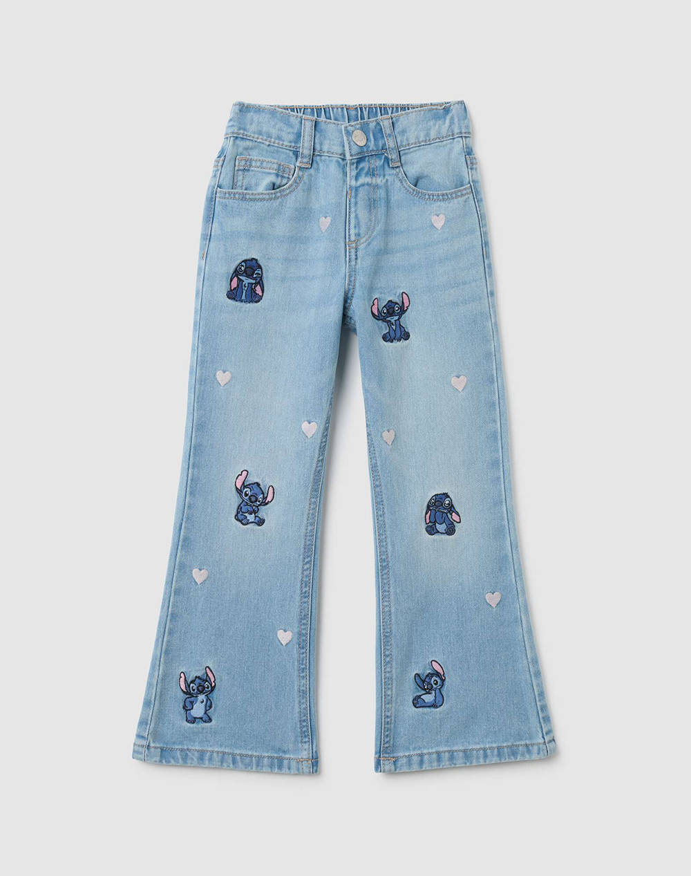 Kids' jeans, high waist, with five-pocket design, regular fit, Disney embroidery, elastic waist and button closure. (Composition: 100% Cotton)